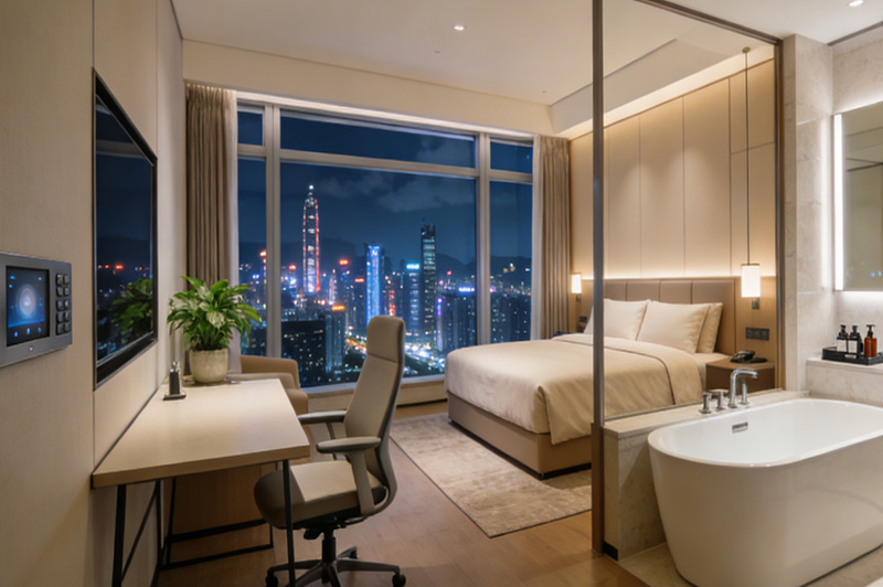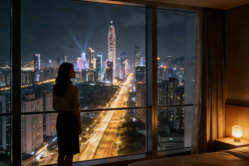 24小时全景落地窗俯瞰城市夜景