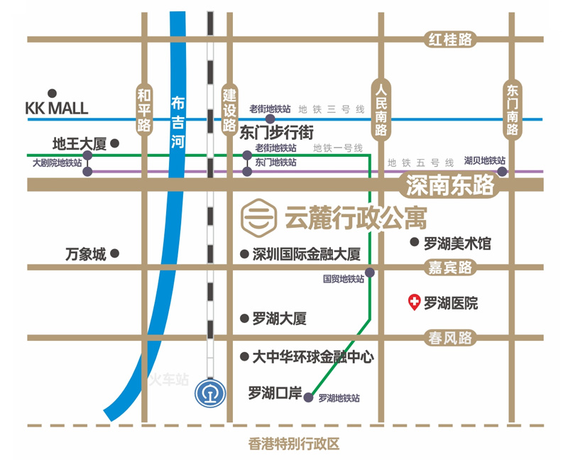 位于罗湖核心地段、三大口岸通达全城、罗湖CBD聚集地段
